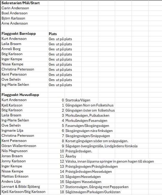 Skriv gärna om ni kan hjälpa till vid barnloppet, eller om ni kan hjälpa till men kommer direkt ut till flaggvaktsplats utan att passera arena.