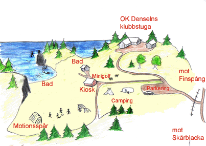 Vägvisning: 1 km väster Skärblacka i riktning Finspång. Skyltning mot Mårängens Camping och OK Denselns klubbstuga.